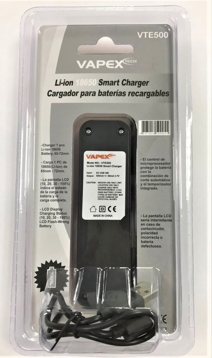 VTE500, Li-ion 18650 Charger, with USB, witout Power Supply, Blister card packing,